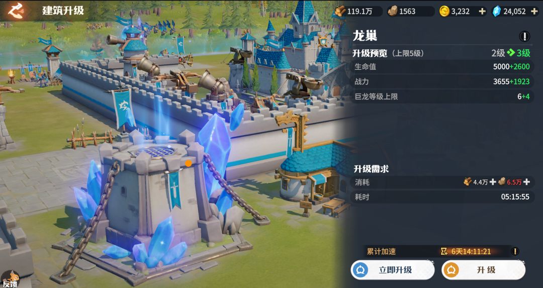 龙巢:培养巨龙、获得额外资源,升级后提升巨龙等级上限