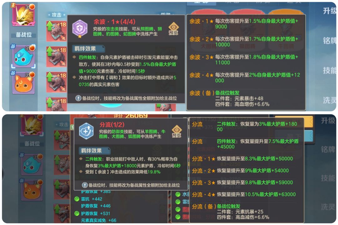 以前我是推荐辅助位元素图腾搭配余波+分流套装,堆高血增伤和减伤属性收益很高,那是因为在以前版本防御职业太肉,加上命运律者废了输出职业的高级属性,加上各种护盾机制在身,竞技节奏非常慢,需要元素爆发来压血线,所以堆高血增伤属性收益还是很可观的,能针对70%血量以上对手提升伤害加成效果,最高效快捷的利用元素爆发把对手血量压制到70%以下,但是到了现在版本,意义就不大了,套装加成效果几乎没有收益。