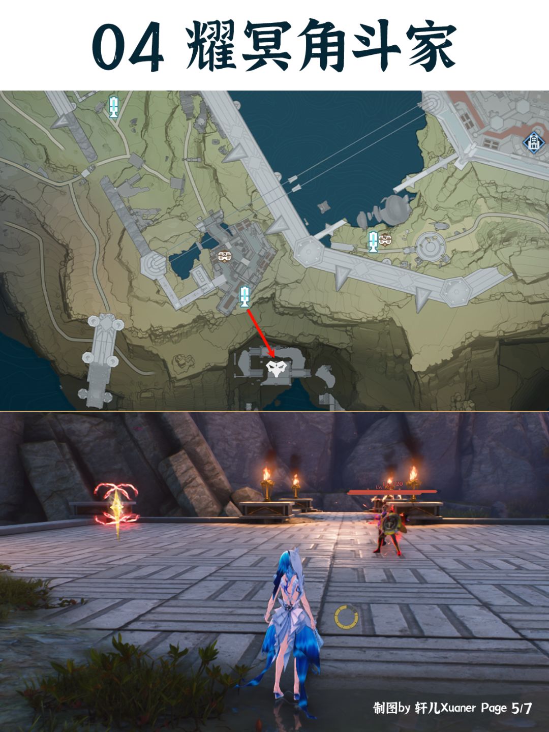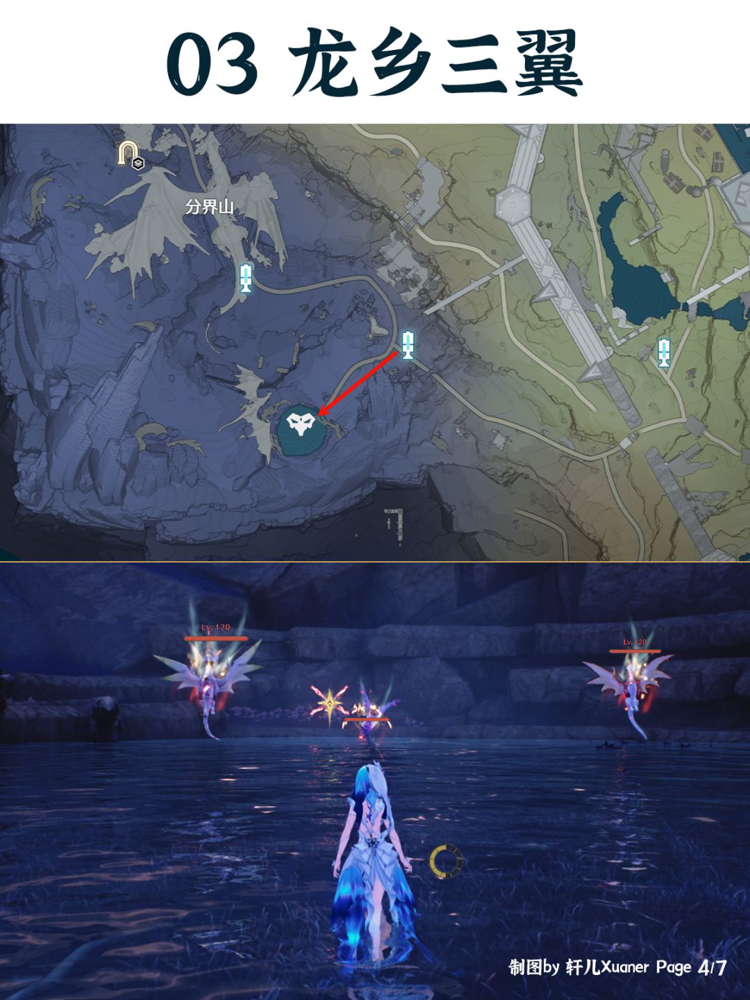 ④ 七丘一共有6只红名怪,位置可以参考图文,分别是炽凛角斗家(七丘左上角小岛)、雷羽角斗家(巨石原左侧遗迹)、龙乡三翼(分界山下方水池)、耀冥角斗家(卡庇托山下方遗迹)、黑潮引兆和暗流恶鳄(哀恸谷)