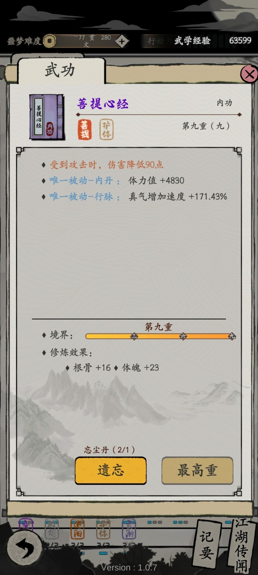 防御:护体(2)+破招(2)+江湖(1)+菩提被动[一档]