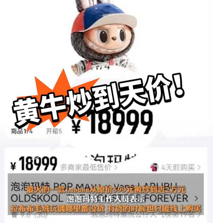 近日一款原价数百元的潮流玩具,在各大平台被炒至2.8万元天价。
