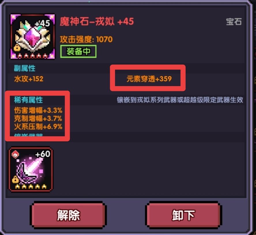 稀有属性选择:伤害增幅,火系压制,克制增幅