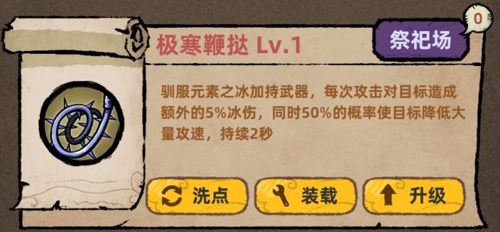 极寒鞭挞:每次攻击对目标造成额外的5/8/11/14/17/20%冰伤,同时50%的概率是目标降低大量攻速,持续两秒。