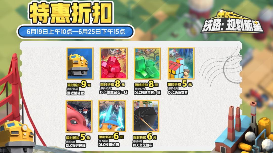 《铁路:规划新星》于6月19日上午10点——6月25日下午15点开启安卓&iOS限时特惠折扣,仅需9元即可获得游戏本体!
