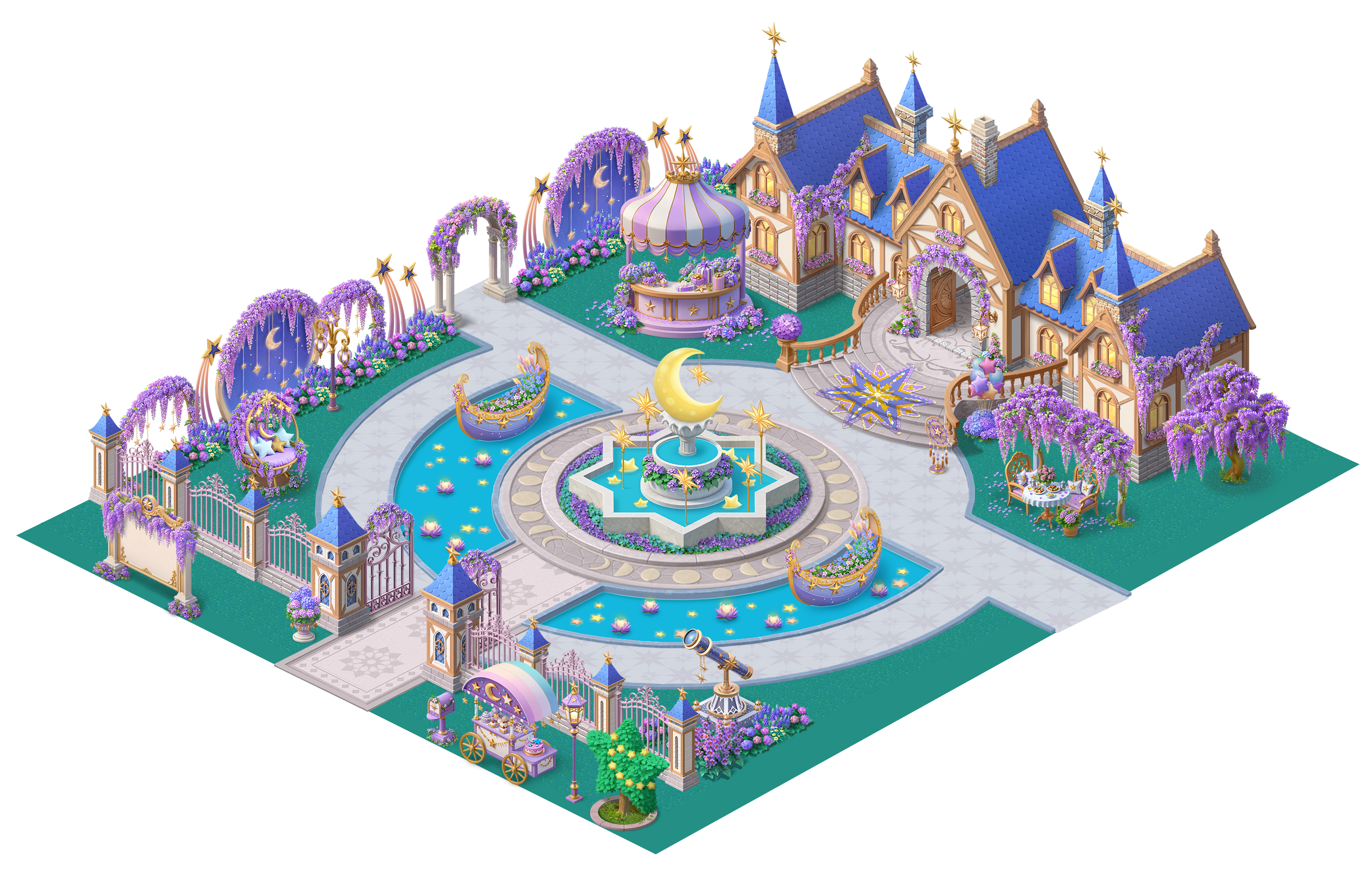 童话般的乐园悄然展开:摩天轮、旋转彩色大茶杯、童年回忆的光影在花园中缓缓旋转。