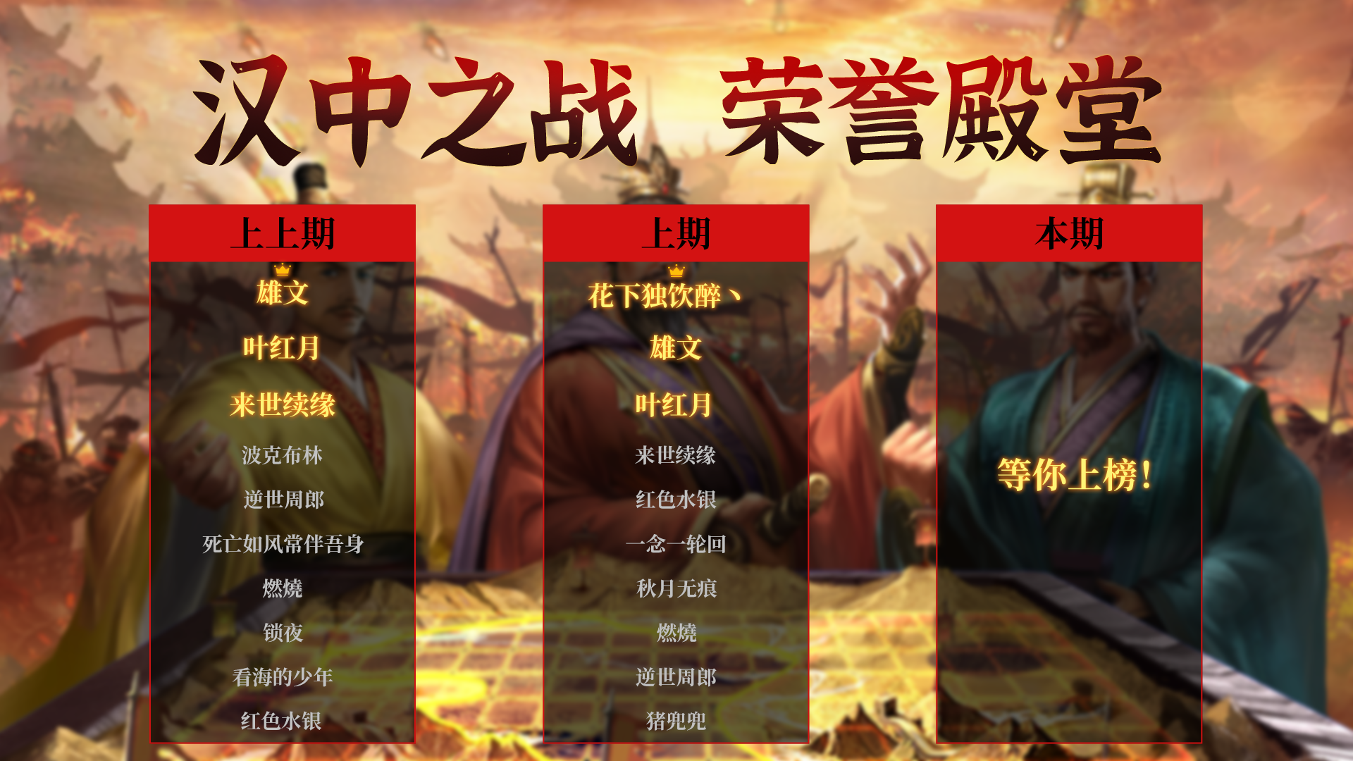 究竟哪些玩家会在这次新版『汉中之战(新)』中大展身手呢,让我们拭目以待~