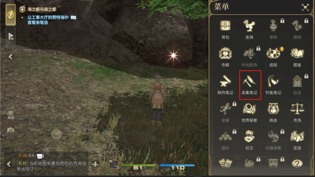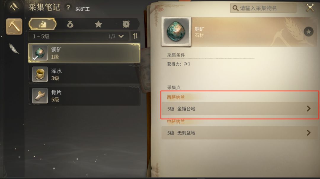 ▼途径一:通过采掘素材获取职业经验(素材首次采集可以获取大量经验)
