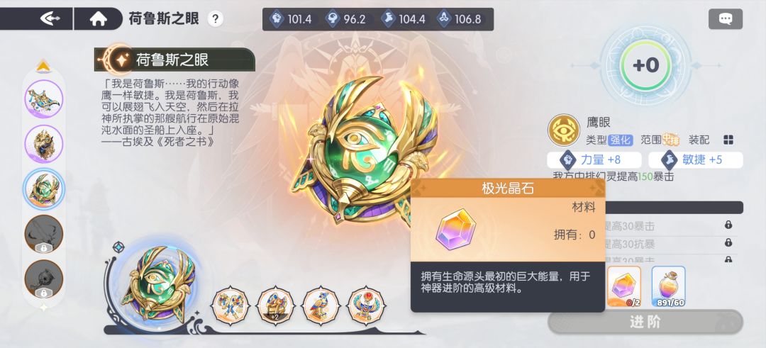 - 极光晶石根据自己的需求考虑是否每日购买,如果玩家有很多神器需要进阶,对极光晶石的需求量大则推荐每日购买,反之则在有需求时购买。