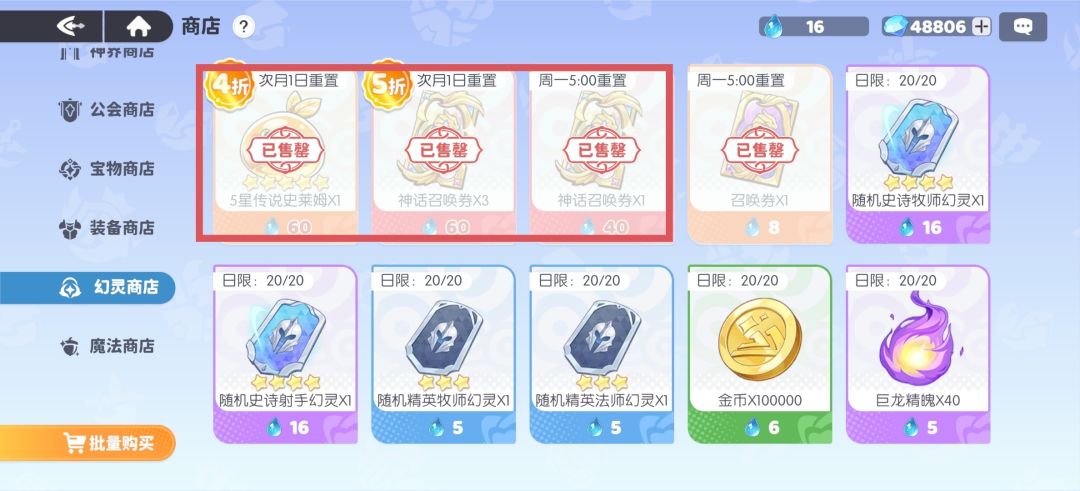 - 神话召唤券优先兑换,尽可能将商店里的神话兑换券买光。