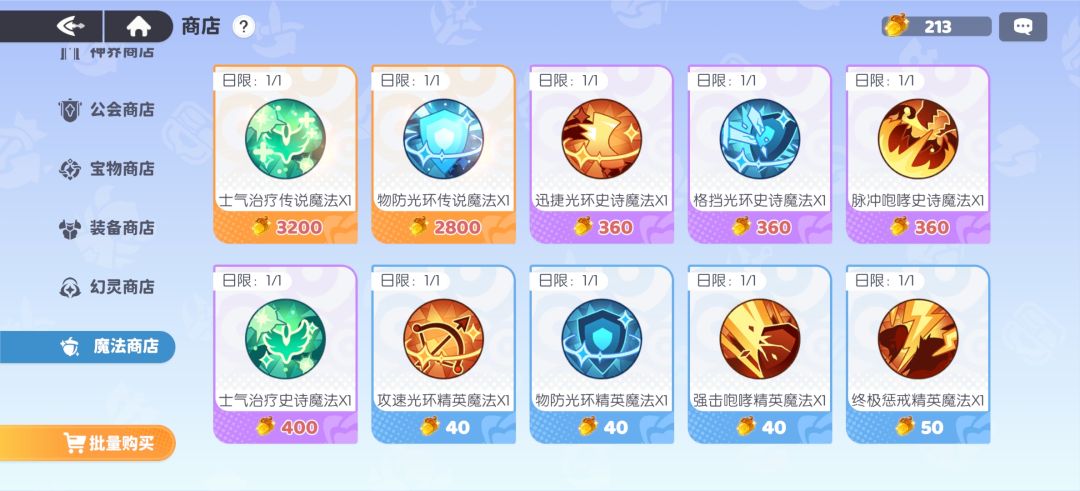 - 龙语魔法每日刷新,根据自己俩个/三个队伍需求购买即可。