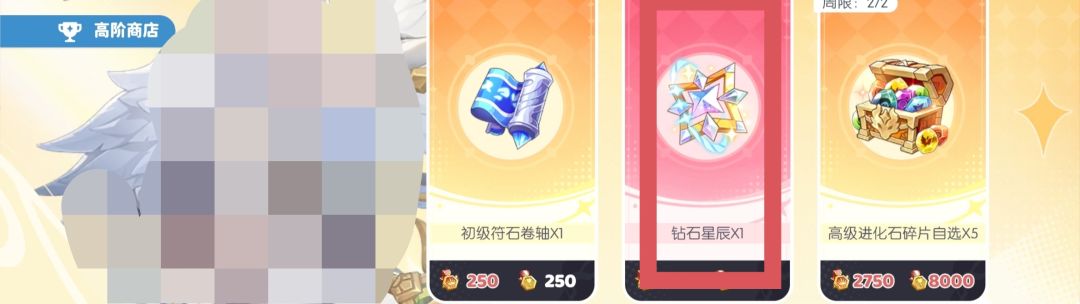 - 是否购买高级进化石碎片自选需要根据自己的需求(个人更推荐公会拍卖获取,因为荣誉徽记获取速度较慢,而星辰作用和需求又比较大,但是如果钻石数量少或舍不得用钻石拍卖的玩家可以考虑高级商店购买高级进化石碎片自选)。