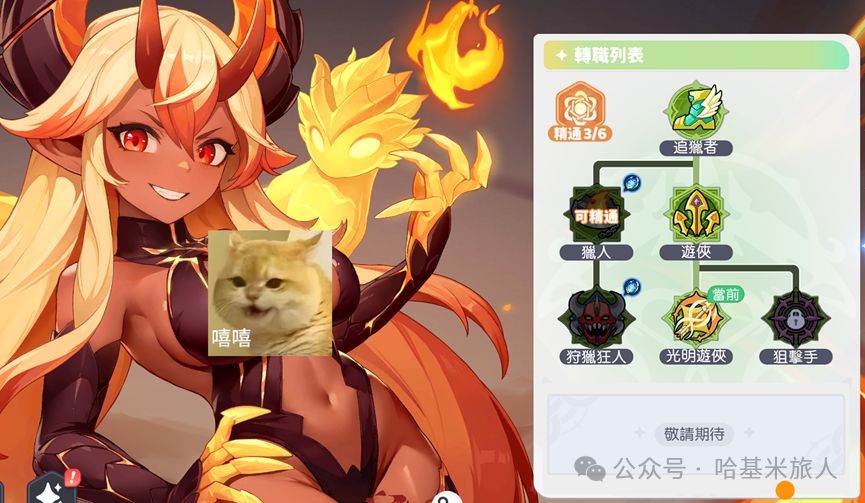 技能树会解锁进阶职业,初始职业的精通和转职可以点,到了二级职业分支需要慎重选择(精通也不能点错),如上图,炎魔最终职业选择光明游侠,可以先精通和转职为游侠,在开启中阶技能树激活三级职业光明游侠后再精通和转职为光明游侠。