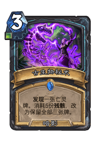 发现一张亡灵牌。消耗5份残骸,改为保留全部三张牌。