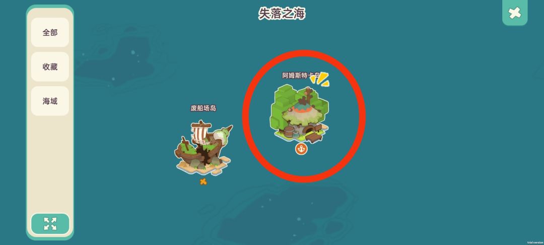 来到村长所在地到之后,按照箭头一直走,走到画红圈的地方,之后向上按照海岸线走