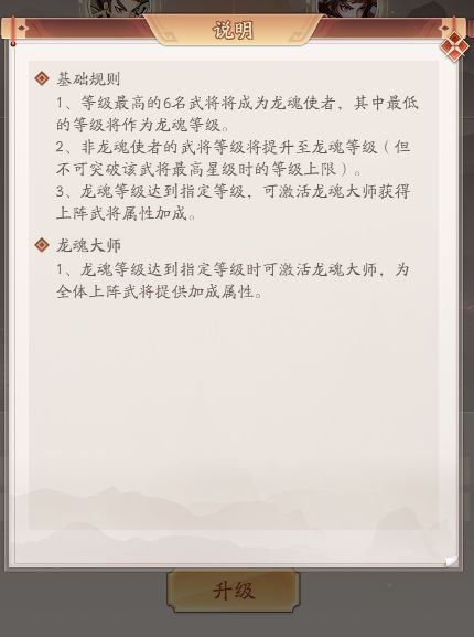当然不少玩家可以会对于如果出现一下需要特定武将进行对策的情况下,又需要拉武将等级或者升阶比较麻烦和耗费资源,对于这种情况呢,游戏中有共享等级的系统,龙魂系统: