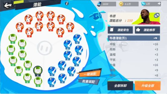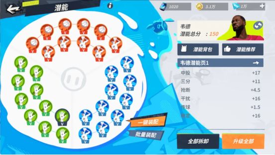 这套潜能主要提升韦德的中投和力量属性,配合动能带来的盖帽加成更好的配合队友去进行协防和中距离得分。