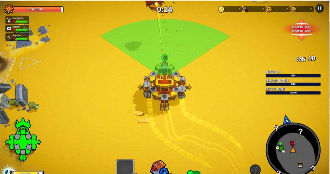 无需瞄准,自动开炮:游戏内的炮塔无需手动瞄准或开炮,只需要通过调整舰船的位置,让炮塔的射程内有小僵尸存在,炮塔就会全自动攻击啦!