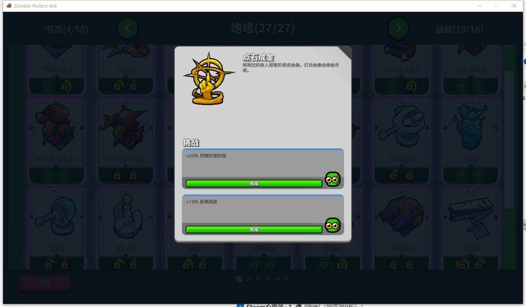 - 进入关卡拾取宝箱会获得随即一款炮塔,游戏过程中击败僵尸也会持续有新的炮塔作为奖励