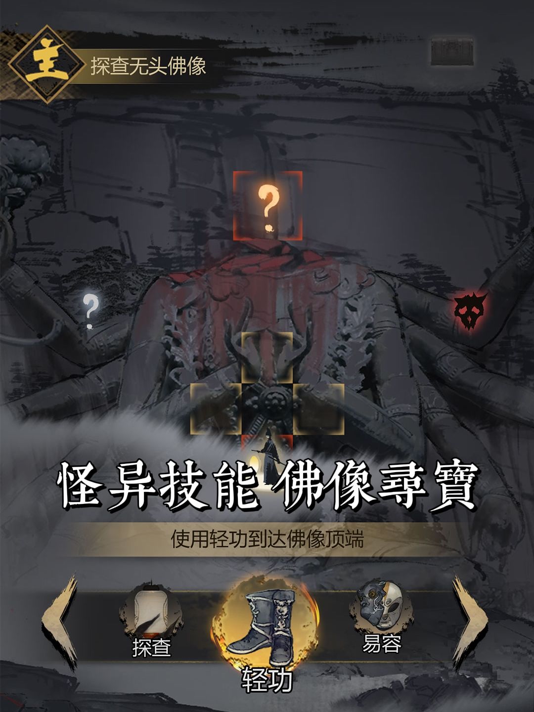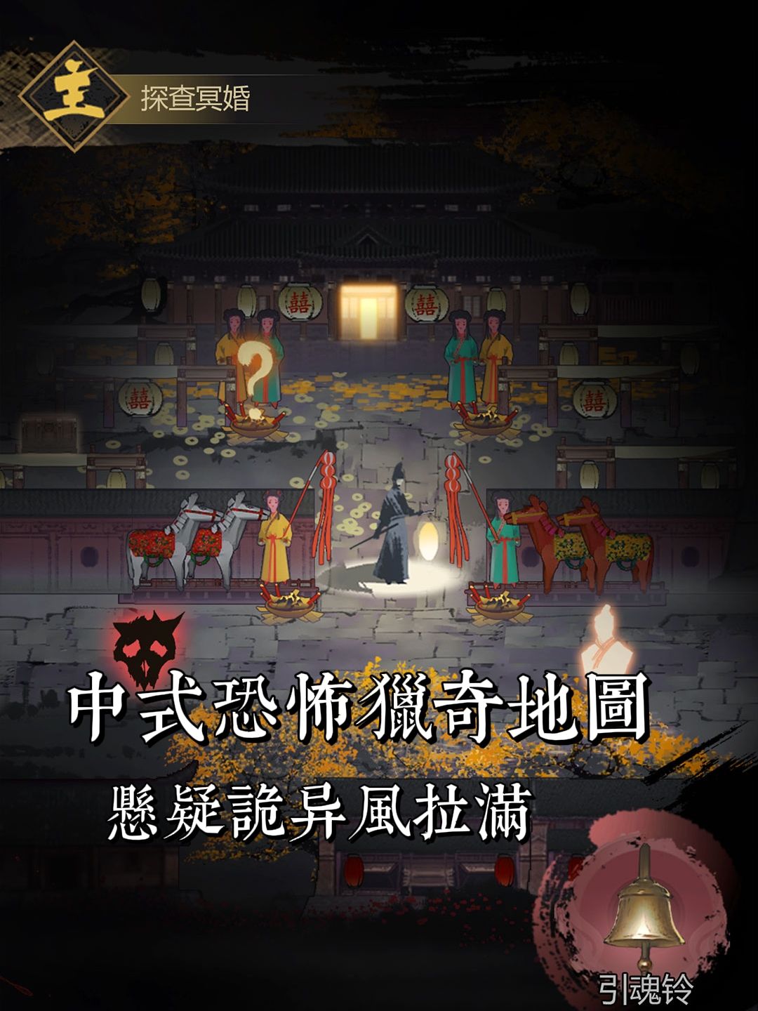 ✅采用国风水墨元素,像烟雨蒙蒙的长安、疑案卷宗、纸人、祭坛等场景元素,营造出了充满悬疑和中式微恐氛围的武侠世界。