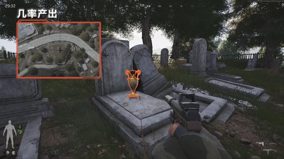 在暗区中,除了各个地图的保险箱中,有概率摸到高价值的“大金”“小金”,也有不少是直接露天放置的,比如在农场地区的西南部露天墓地,能发现在某些墓碑上摆放着花瓶、人头像之类的“大金”,有时候也能在墓碑上找到宫廷银器这种“小金”。
