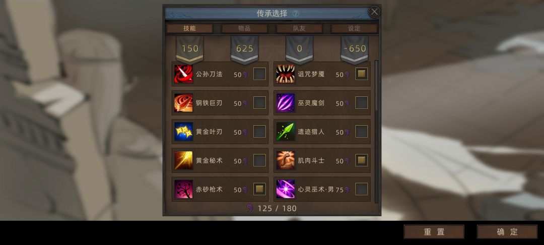 然后得到的点数拿来随机得秘籍,总共只有8个技能格子。有些没必要的就不学。