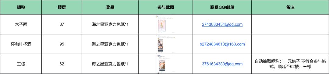我们将从所有参与活动并符合活动要求的搭配师中,随机抽选3位,每位送出海之星亚克力色纸一份。