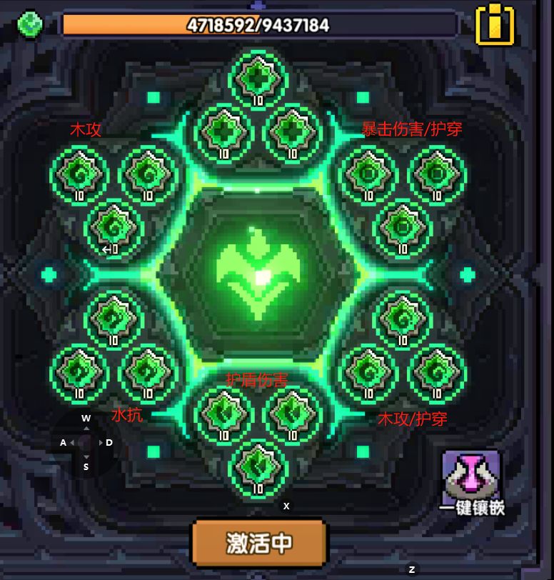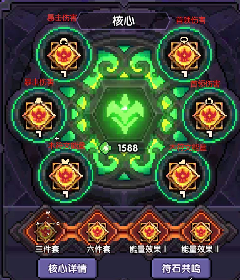 属性:木攻/暴击伤害、护甲穿透、暴击值(依据自身面板选择属性,4选3)