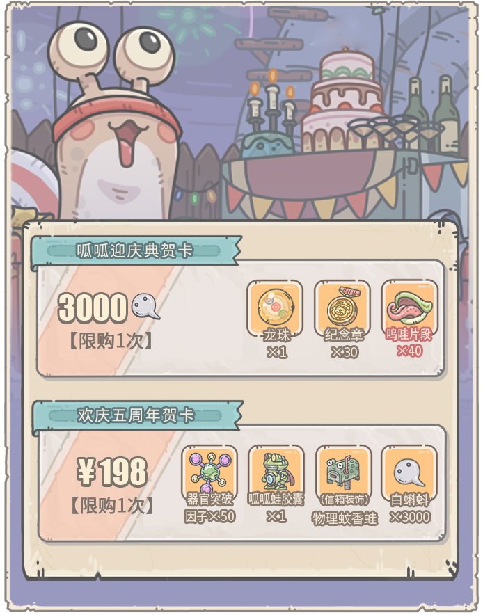 1.活动期间,可购买白蝌蚪周年贺礼,连续3天领取奖励
