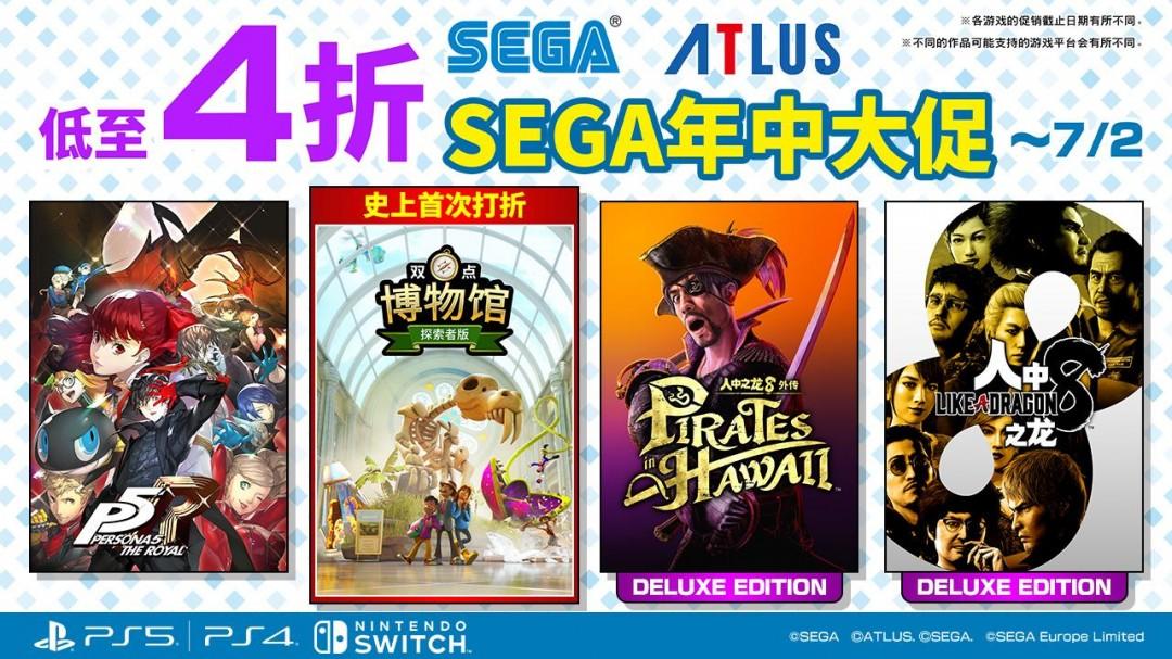 “SEGA年中大促”活动开跑,PlayStationStore和Nintendo eShop部分在售游戏推出限时优惠。本次活动将于2025年7月2日结束。
