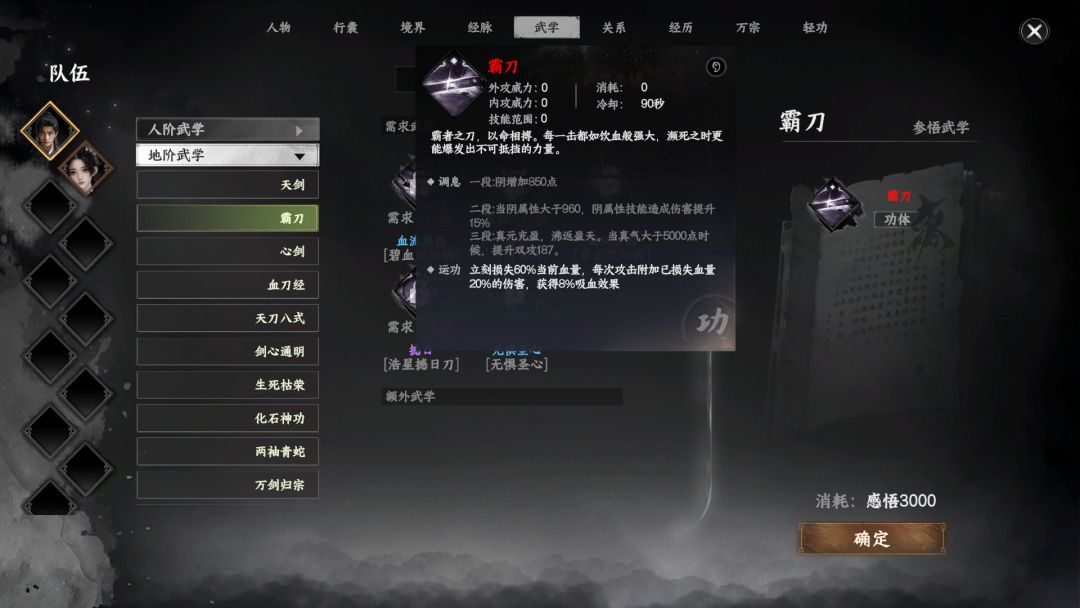 出现支线:人如其刀,跟随指引完成任务后武学可以参悟霸刀