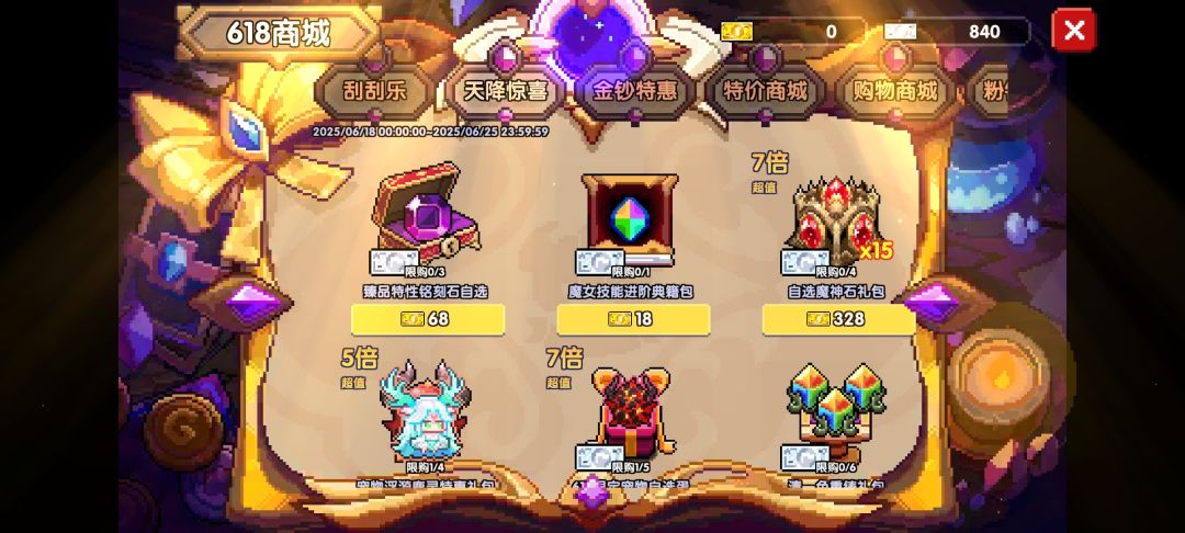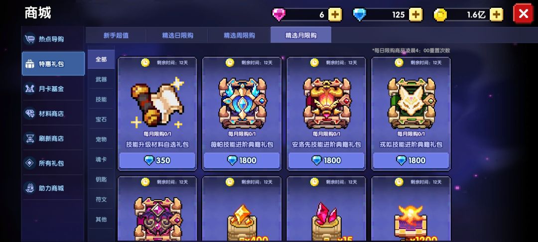第四种就是钻石购买,在特惠礼包的精选月限购可花350钻石购买,但这里的只能获取白、蓝、紫三种品质,橙色品质要在活动的商场里的豪华版才有,比如618商场、双11商场