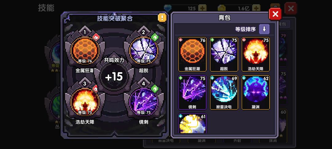图内的+15就是代表技能等级75级,装备抗争系列技能会自动到达75级,装备部分宿命技能自到达到69级。