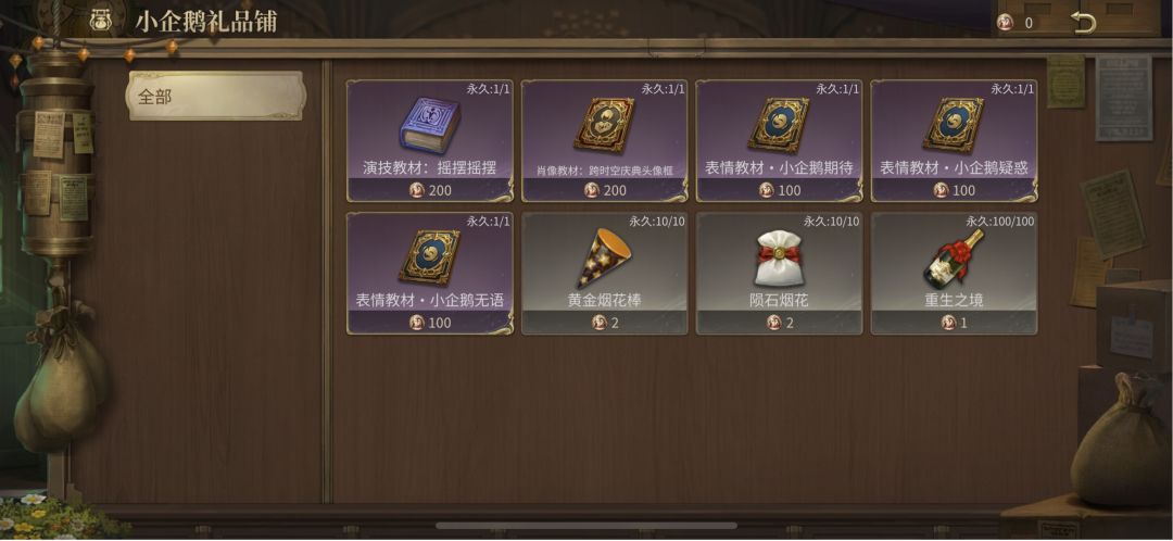 ●商店内容:原创动作:演技教材·摇摆摇摆~、头像框教材·跨时空庆典、小企鹅表情包*3、黄金烟花棒、陨石烟花、重生之境