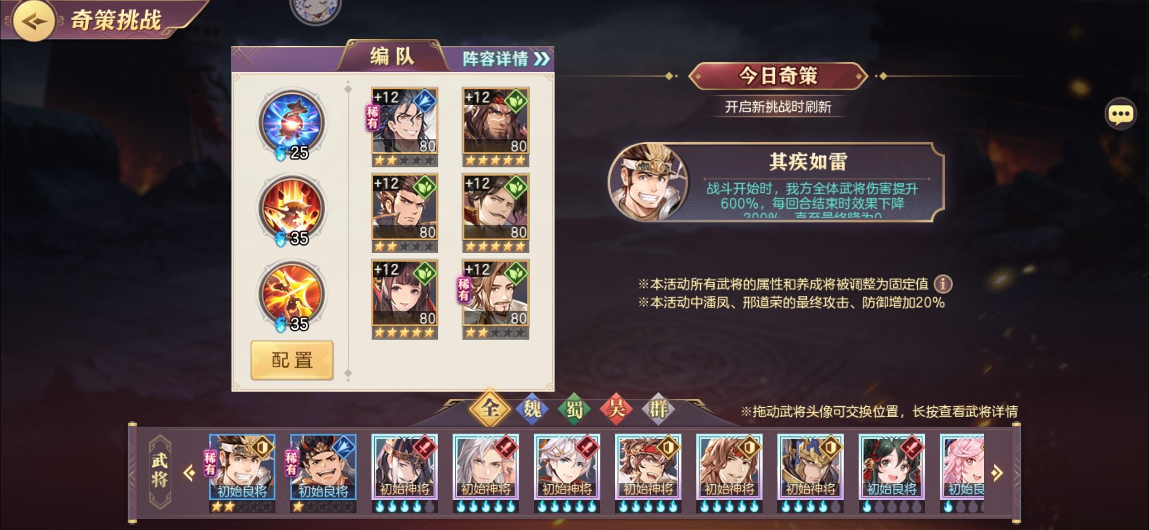 我自己主力是毒火,只能打7500,现在这个阵撞了二三十次吧,目前就这伤害。里面曹操是十连歪到2星的,另外两个是上次活动加三顾茅庐到的二星,我估计几一星也没啥区别