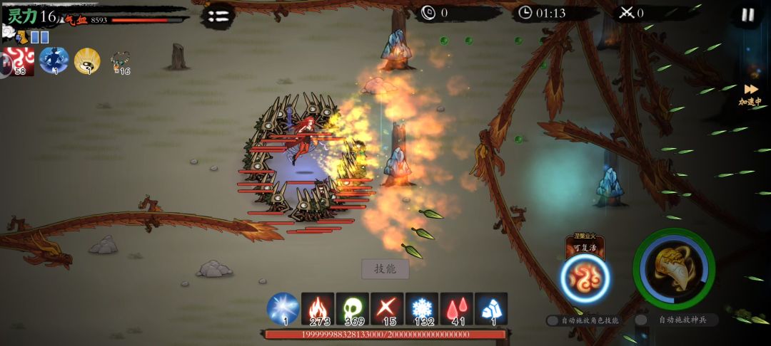 1. 开启后所有攻击附带灼烧(符法不算),灼烧持续时间+6s。(不要把自动打勾,它是一个状态)。期间角色自身恢复力为0(但是可以用流光玉坠,妖花法什么的)