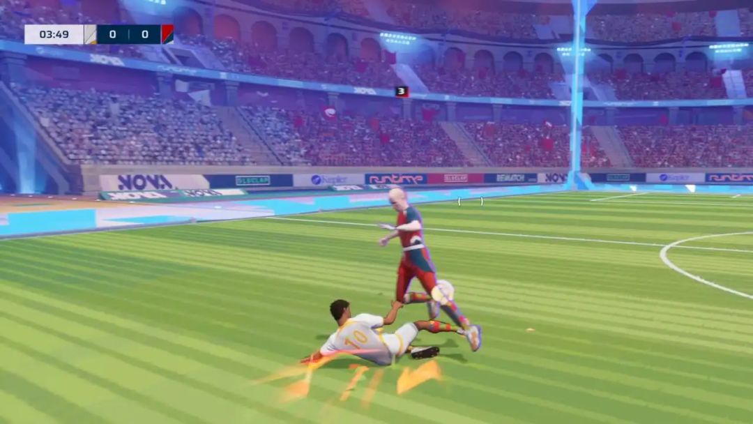 那《开球! REMATCH》为什么敢以足球为题材,制作出这样一款游戏呢?做为一个体验过后的玩家,我认为是靠快速上手的游戏策略。相比于其他足球类型游戏,本作在足球规则上面是大减特减,什么越位,踢人,手球等等犯规统统删除,甚至把边界挡住,足球无法出界。删除了大部分规则,将整个玩法专注于踢球本身。