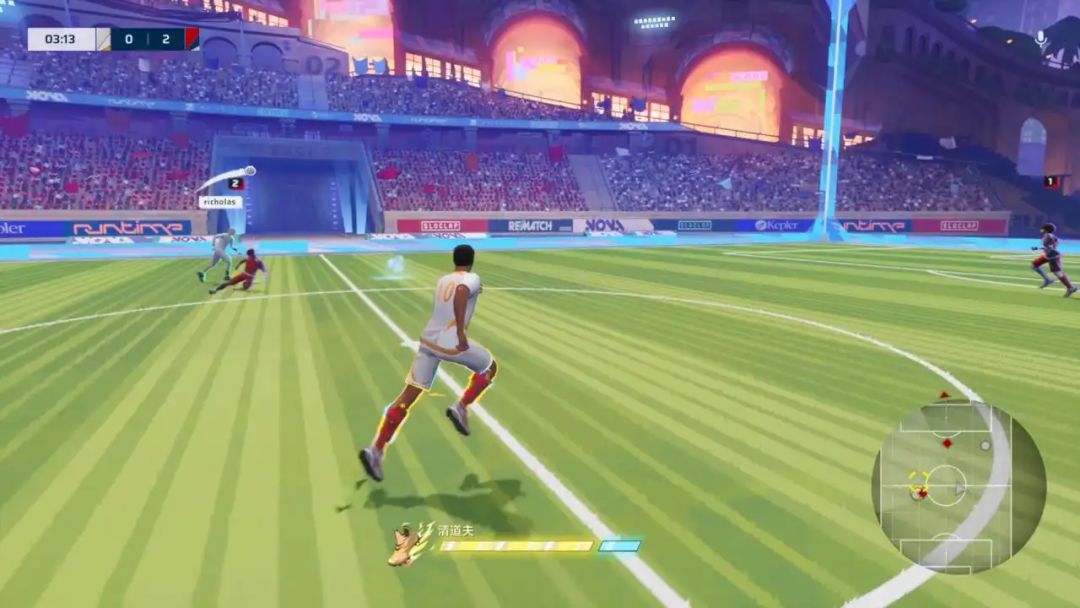 多种操作间的组合,给了本作十足的可能性,让我这个没怎么踢过足球的玩家也想要在训练场里练练球技。在《开球! REMATCH》中,快节奏也是一大特色,缩小后的足球场,可以加速的能量条,无一不是为了快速得分来设计。