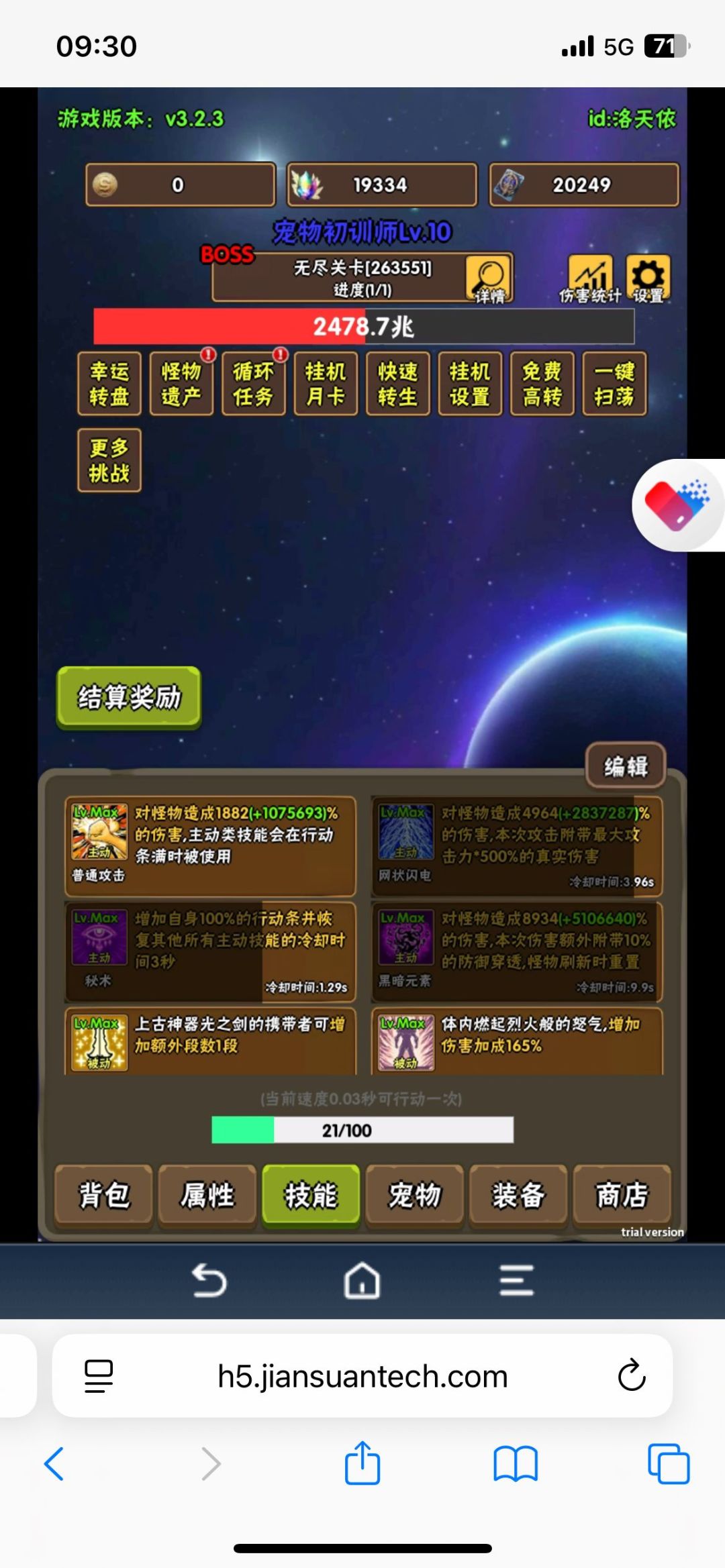 选择了增加boss伤害,确保前期能速度秒boss