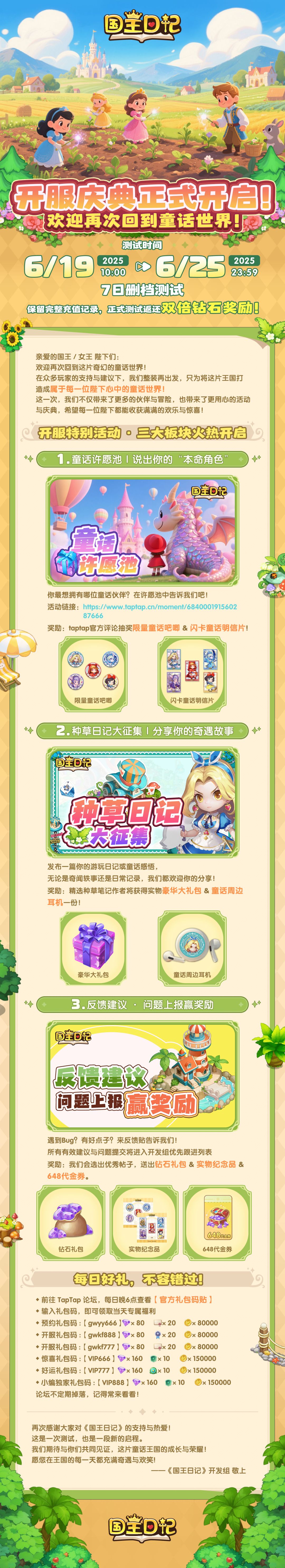 🎉《国王日记》开服庆典正式开启!欢迎再次回到童话世界!