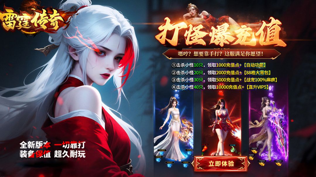 传奇不老,热血重燃!备受瞩目的《雷霆传奇》将于6月20日正式首发,为所有传奇爱好者献上一场前所未有的巅峰盛宴!这款游戏堪称高阶复古三职业传奇的巅峰之作,凭借终身福利体系诚意满满。开服当天,每位玩家均可零门槛免费领取价值888元的豪华礼包,内含海量珍贵道具及888代币,助你在玛法大陆的冒险之旅中快人一步!