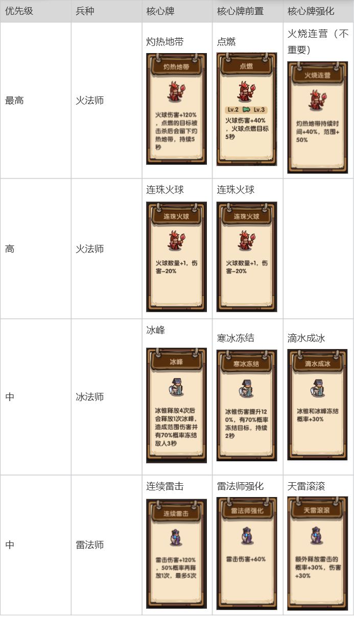 核心策略为:无脑火法师的一关,有琵琶女的存在,前排不推荐携带输出兵种,可以考虑用刀盾反伤(被眩晕也能触发反伤)其余均优先火法。同时也可以选雷法直接切琵琶女