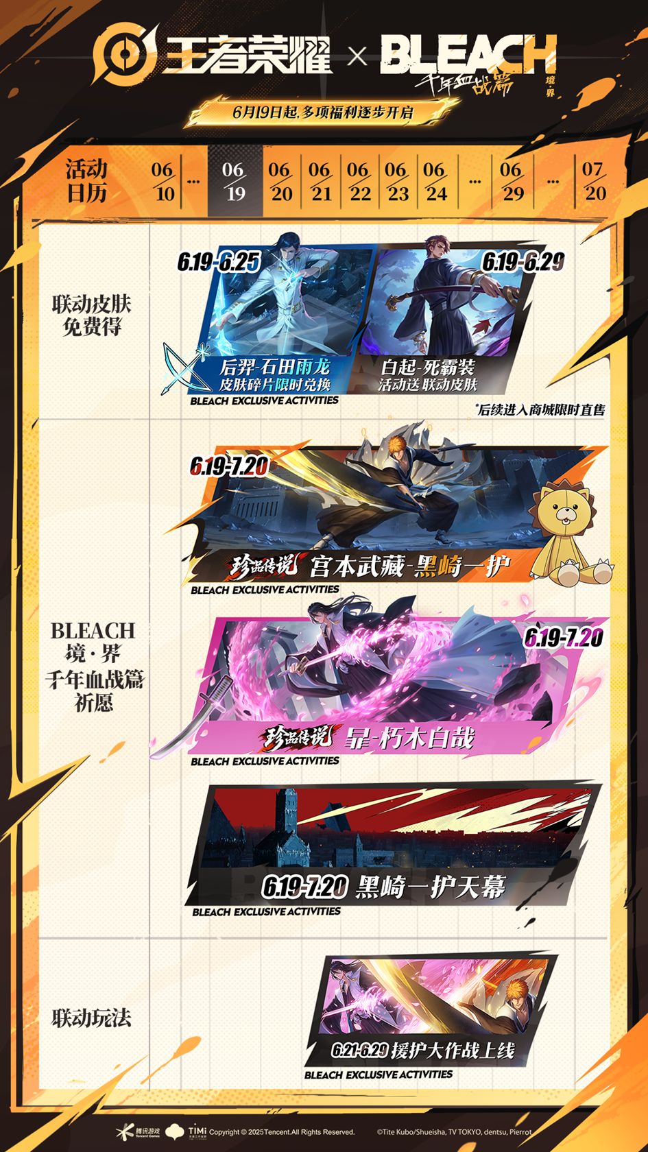 BLEACH 境·界 千年血战篇联动开启,免费得后羿、白起联动皮肤!