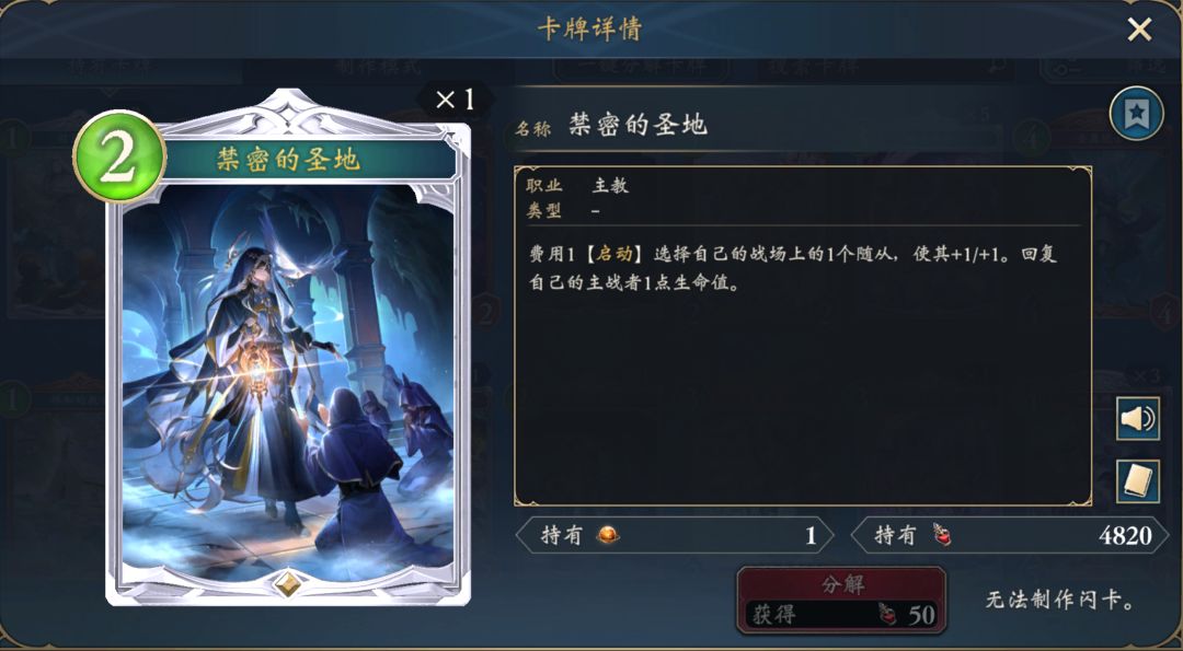 - 起手优先留解牌(因为构筑只有一张贞德可以考虑优先留贞德)和能过牌的(叮当天使或者祥和的教会),最好是1费过牌护符和3费解场护符开局。