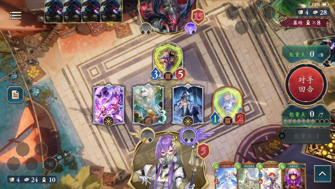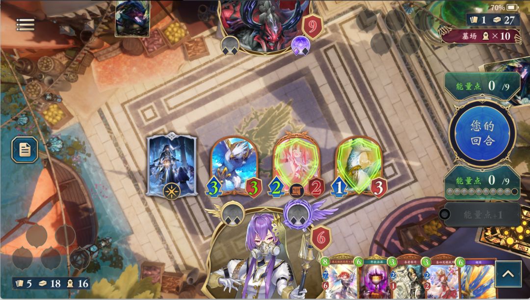 - 后续进入我们的节奏,在对方手牌数量有限的情况下逐渐恢复血量并站场我们就已经稳赢了。