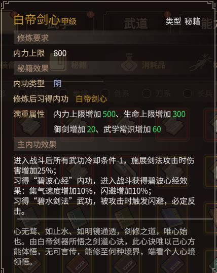 2、前往剑阁找到上官姐妹,得知剑痴和祖师婆婆相识操纵上官姐妹与剑痴战斗,容易输,实在想赢可以提前把剑痴入队(盟主金令或者失心腐志丹)给他扒光(输赢不影响,均有奖励)队内所有队友及主角悟性+1,获得内功白帝剑心