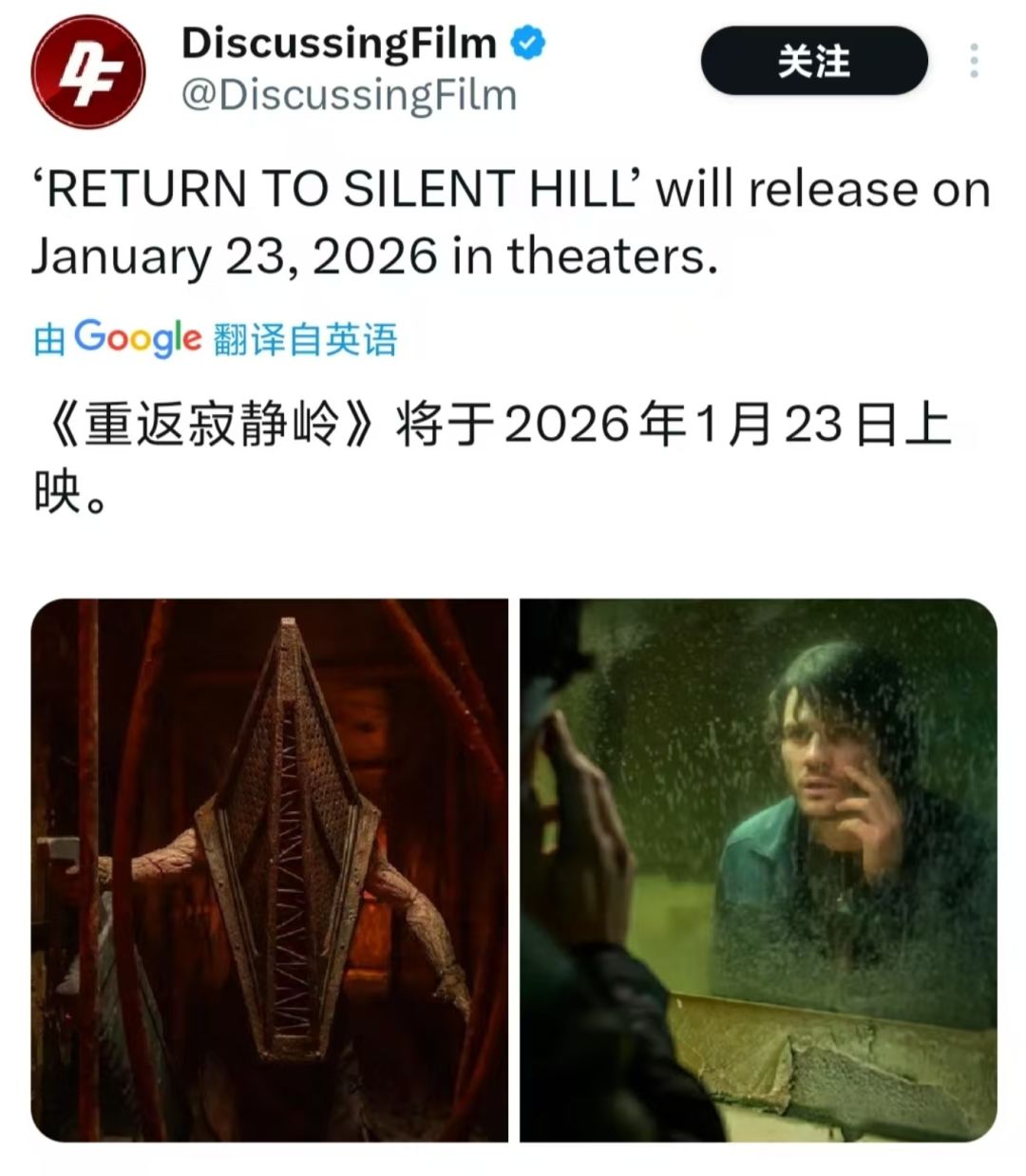 据外网最新消息!游改电影《重返寂静岭》确认定档!北美2026年1月23日上映!