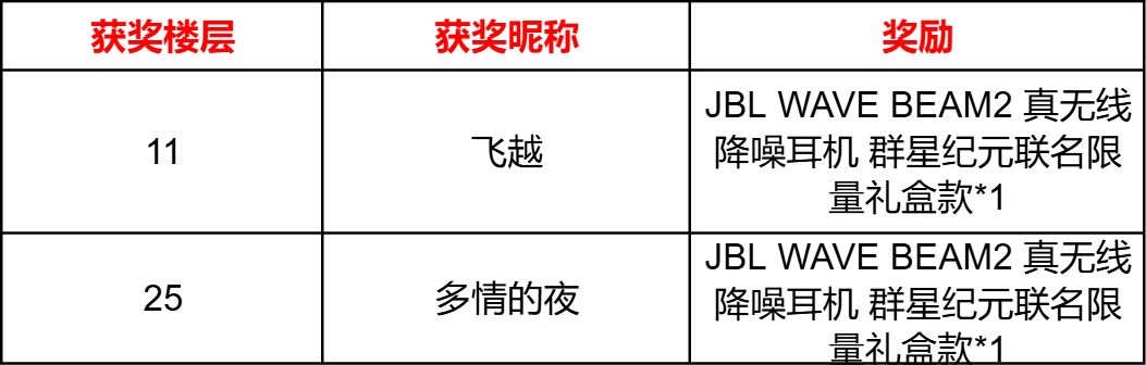 ≥100条,解锁奖励:JBL WAVE BEAM2 真无线降噪耳机 群星纪元联名限量礼盒款*1,共2份