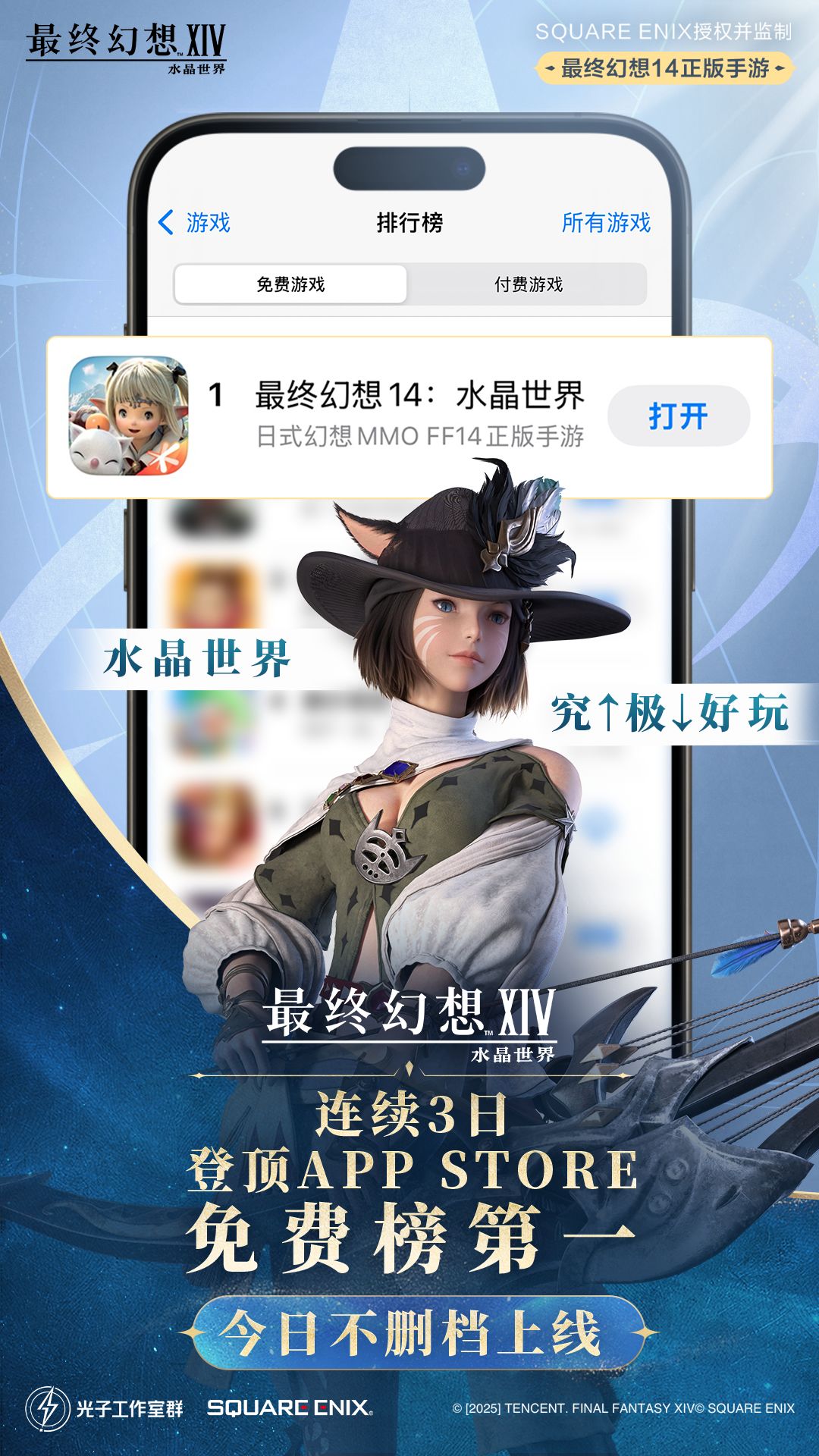 《最终幻想14:水晶世界》连续3日登顶iOS免费榜第一!