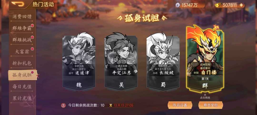 活动内容:活动期间开启限时副本挑战,活动副本共有7层,每层4关,每次过关可获得奖励。每日解锁一层可进行挑战。