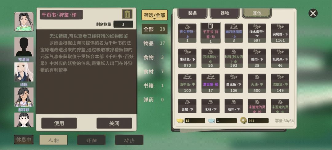 罗妖会主要靠打鲲任务,卖鲲材料挣钱。